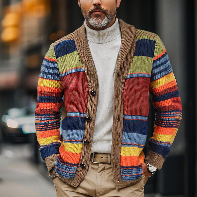 Men's Cardigan Sweater Chunky Knit Button Up Striped Shawl Lapel Knitwear Elegant Carnival Formal Clothing Apparel Drop Shoulder Fall Winter Red M L XL