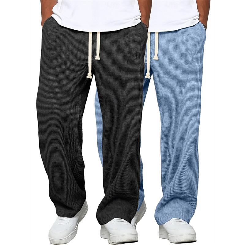 Multi Packs 2pcs Men's Grayblack Sweatpants Trousers Drawstring Elastic Waist Plain Vacation Daily Wear Polyester Spring
