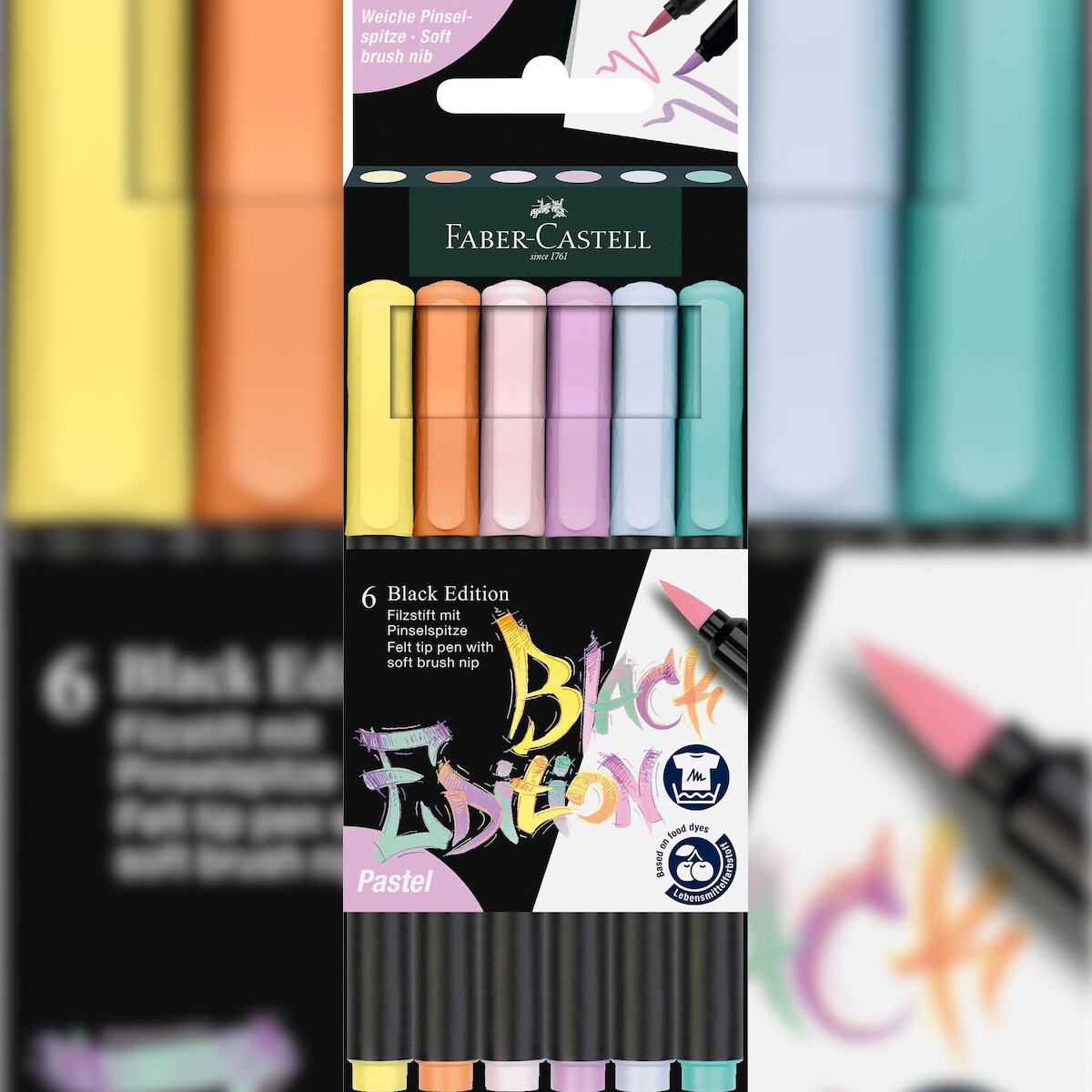 FABER CASTELL 116453 Faserschreiberetui Black Edition Pinselspitze Pastell 6er Kartonetui(S)