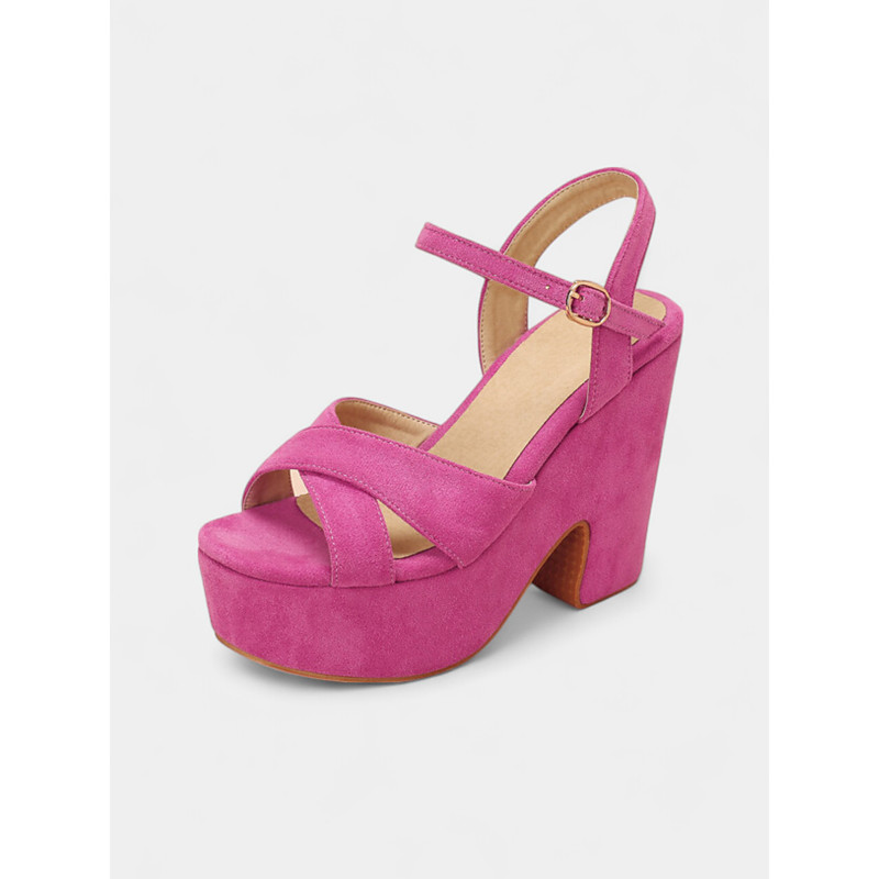 Women's Hot Pink Suede Platform Sandals with Ankle Strap - Bold Chunky Heel Shoes for Nightlife Parties and Clubs