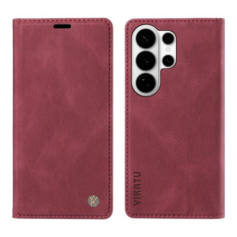 YIKATU Samsung Galaxy S26 Ultra Plånboksfodral Konstläder - Vinröd