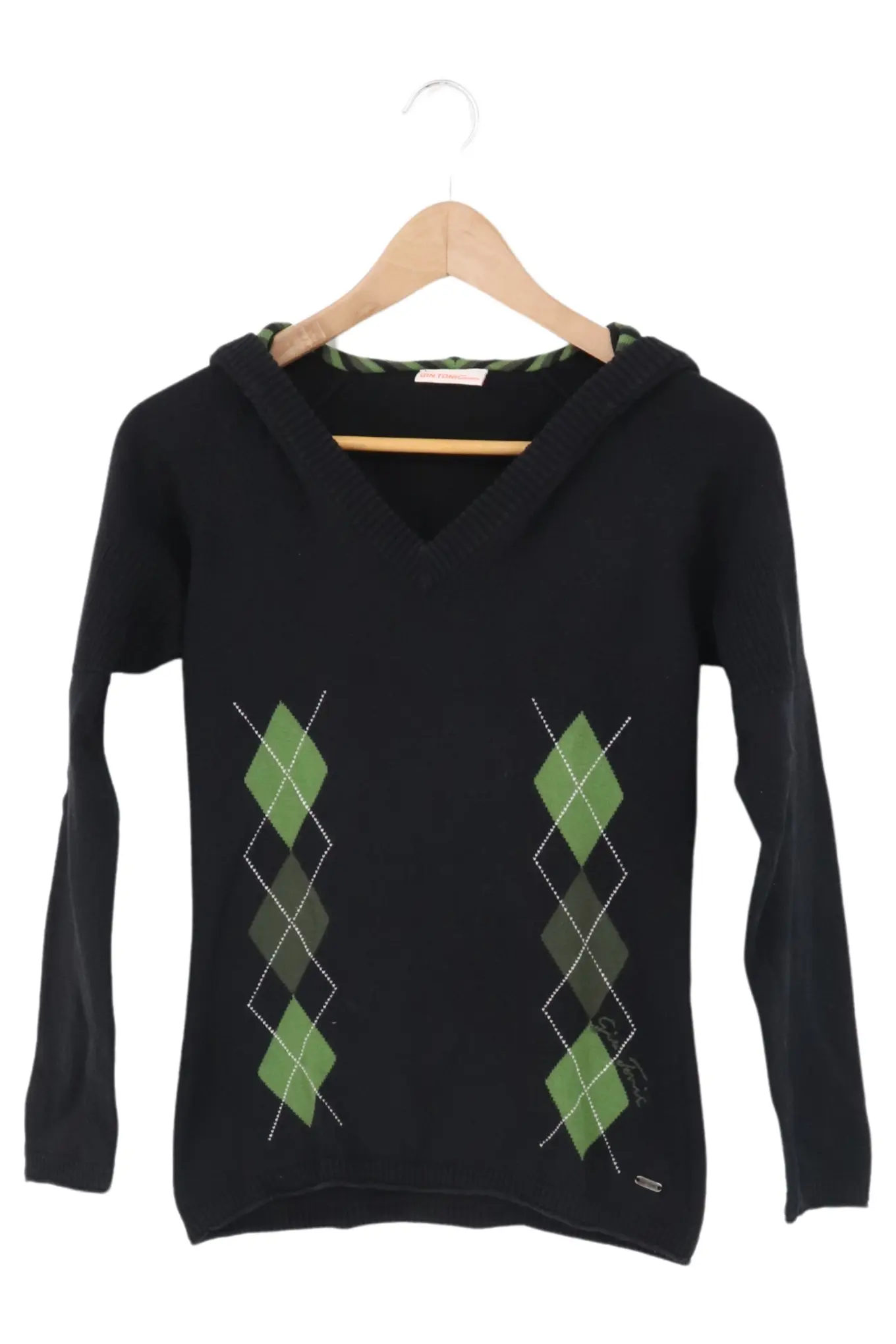GIN TONIC Kapuzenpullover Damen Gr. S Schwarz Argyle Muster