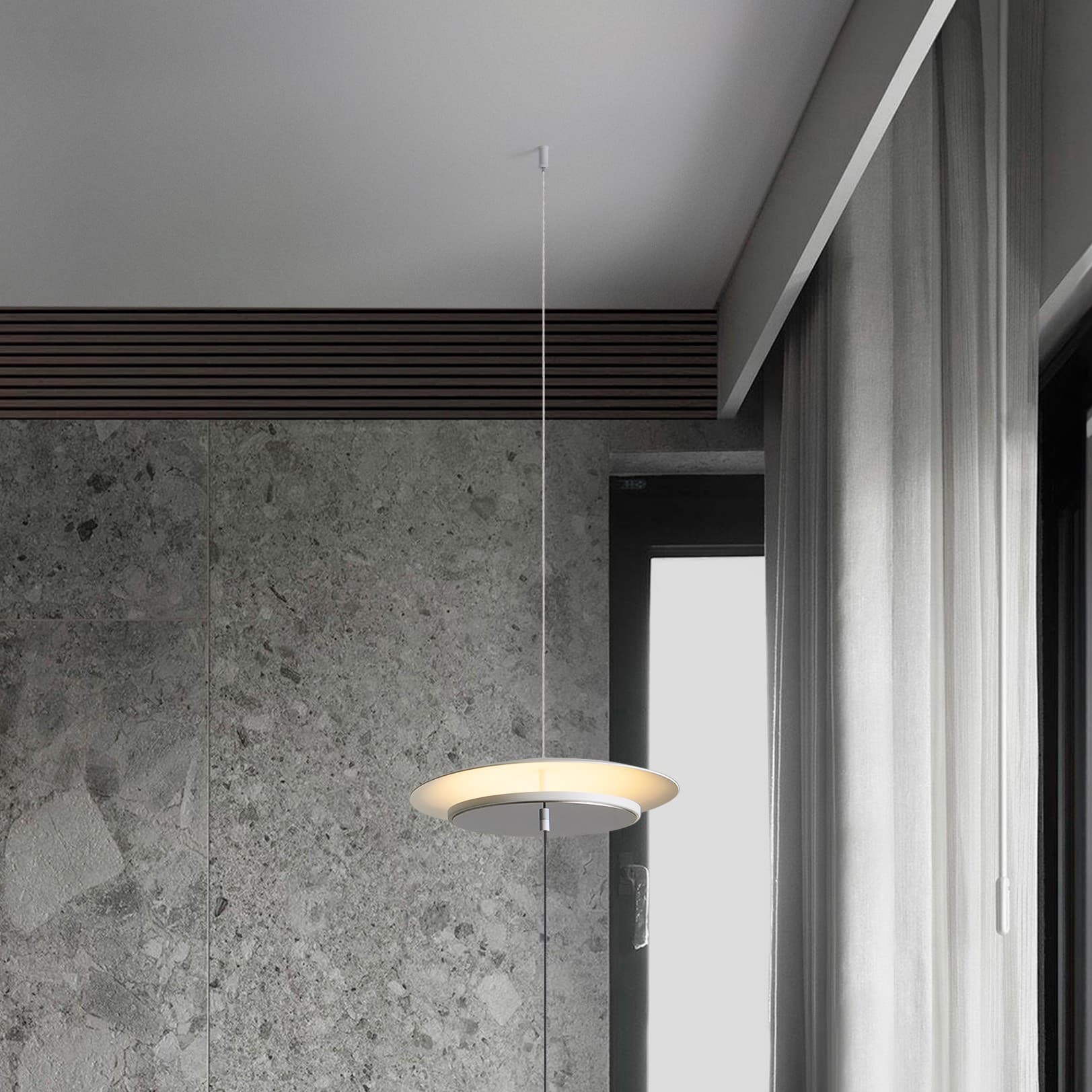 Nova Luce Olos - lampe suspendue - 35 x 370 x 10 cm - 21W dimmable LED inclus - blanc sablé et miroir chromé