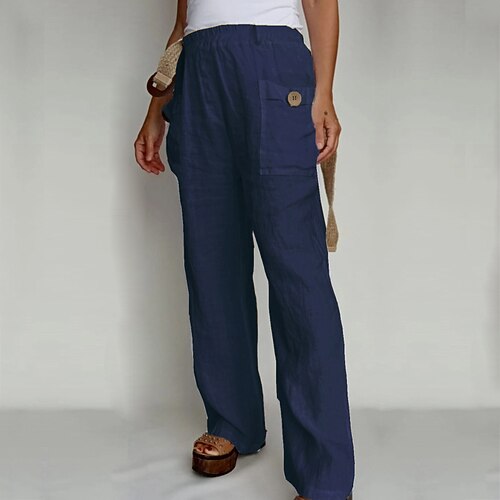Per donna Pantaloncini in cotone e lino Pantaloni ispirati al lino Pantaloni in cotone e lino Moda Lunghezza intera Naturale Semplice Tasca Comodo All'aperto Streetwear Uscire Rosso scuro Blu marina