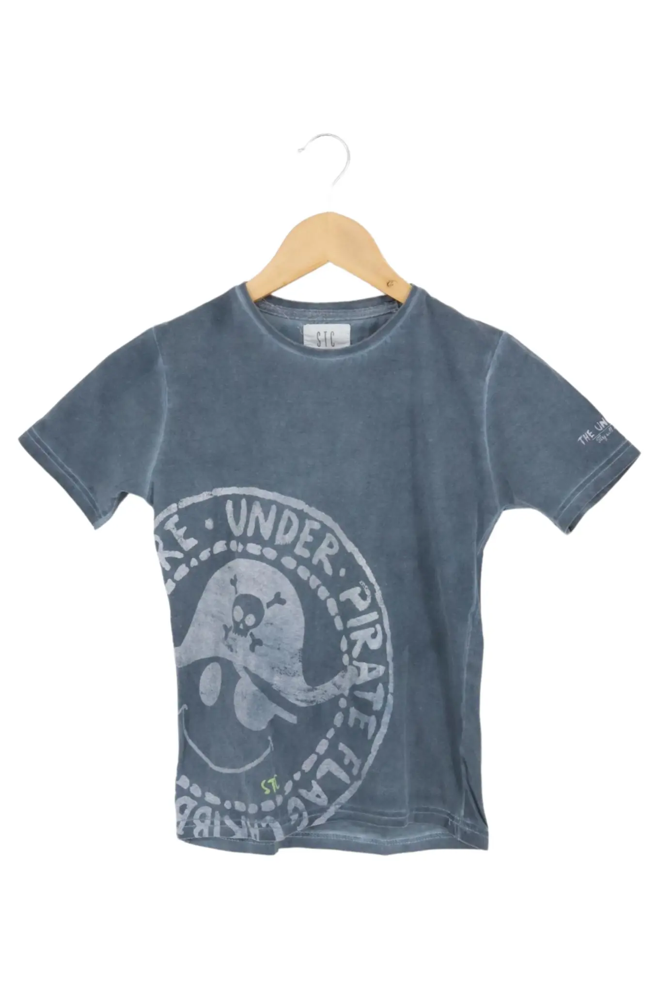 STACCATO Kinder T-Shirt Gr. 128 Blau Piratenmotiv Baumwolle