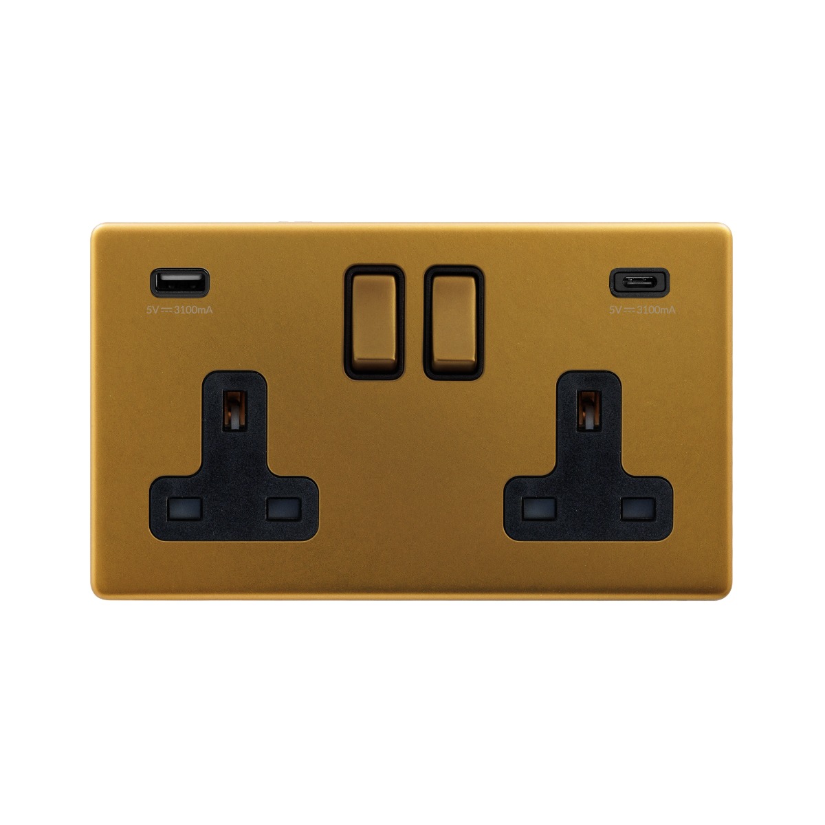 Soho Lighting Brushed Brass with Black Insert 13A 2 Gang Super Fast Charge 45W USB A+C Socket