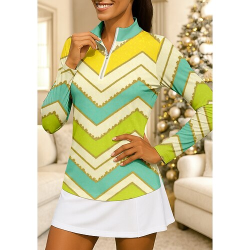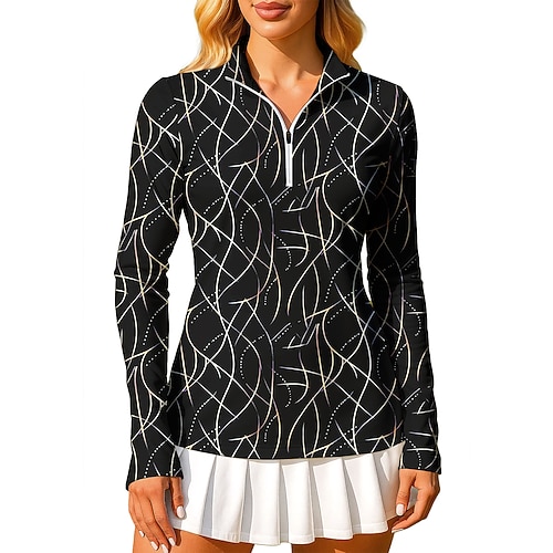 Per donna Geometrico Maglietta sportiva Polo da golf Maglia da tennis Maglietta da tennis Manica Lunga Cerniera Floreale UPF50 Resistente ai Raggi UV Alta elasticità Traspirante Tennis Golf