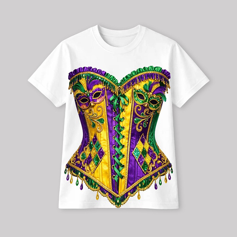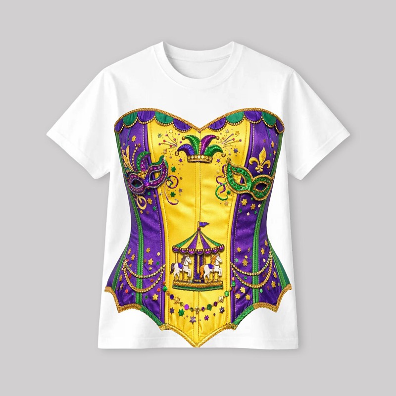 Mardi Gras 2026 T-shirt Sleeve T-shirt for Women's Adults' Hot Stamping for Carnival Mardi Gras Club Festival
