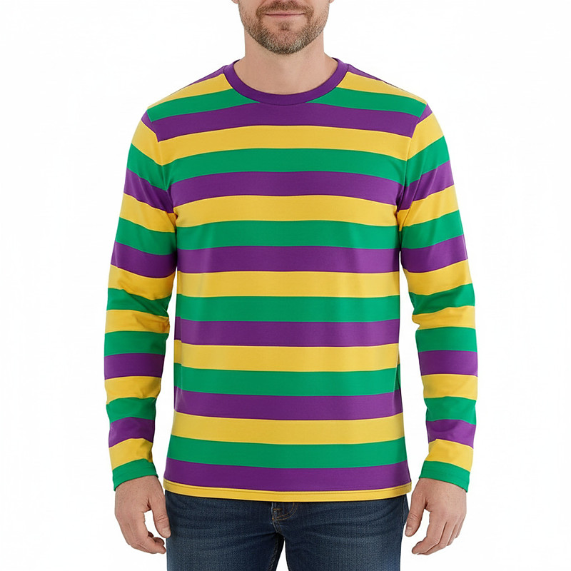 Mardi Gras 2026 T-shirt Sleeve T-shirt for Men's Adults' Hot Stamping for Carnival Mardi Gras Club Festival