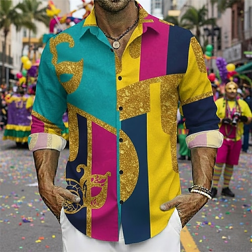 Men's Mardi Gras Carnival Shirt – Graphic Festive Mask Party Design