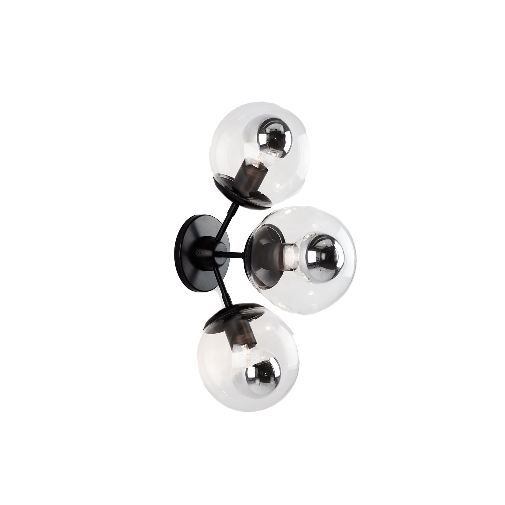 Roll & Hill - Modo Sconce - 3 Globes Klarglas, Svart - Vägglampor - Jason Miller - Transparent,Svart