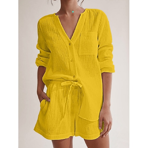 Per donna Set da due pezzi Set di Pantaloncini Bolero Top Manica Lunga Scollo a V Tinta unica Coulisse Elegante Moda Streetwear Casuale Quotidiano All'aperto Blu Bianco Giallo Estate Vestibilit