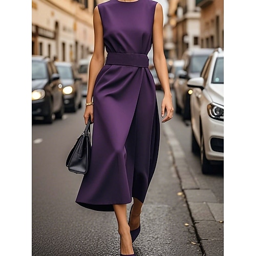 Per donna Abito Midi Abito da lavoro Abito a Tubino Elegante Moda Moderno All'aperto Vacanza Uscire Vestibilità regolare Semplice Senza Maniche Girocollo Nero Bianco Rosso Blu marino Estate Primavera