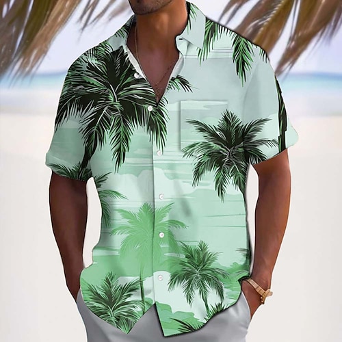 Per uomo Albero di Cocco Piante Tropicali Camicia Camicia hawaiana estiva Camicia con Bottoni Manica Corta Hawaiano Vacanza Ferie Abbigliamento mare Estate Collo ripiegato Stampa 3D Una tasca