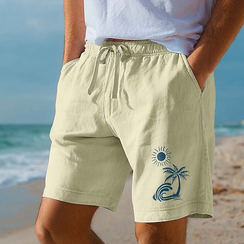 Per uomo Shorts Pantaloncini Estivi Shorts da Spiaggia Pantaloncini casual Pantaloncini con lavaggio acido Coulisse Elastico in vita Lavato Albero di Cocco Semplice Comodità Traspirante Lunghezza al