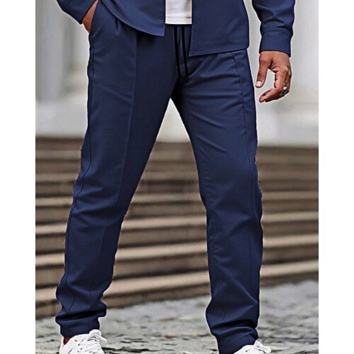 Per uomo Pantaloni di Lino Tinta unica Traspirante Lunghezza intera Formale Matrimonio All'aperto Elegante Vacanza Nero Bianco Micro-elastico