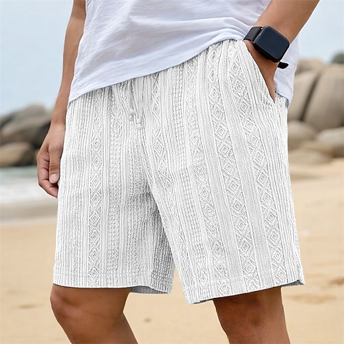 Per uomo Shorts Pantaloncini casual Jacquard Testurizzato Geometrico Semplice Comodità Traspirante Sopra il ginocchio Casuale All'aperto Spiaggia Vacanza Moda Nero Bianco Micro-elastico