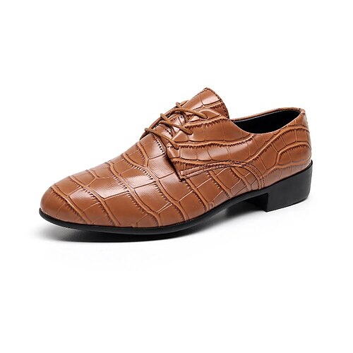 scarpe eleganti da uomo in vera pelle sintetica con motivo coccodrillo marrone – eleganti, punta affilata, tacco medio, stile formale per ufficio, matrimonio e sera