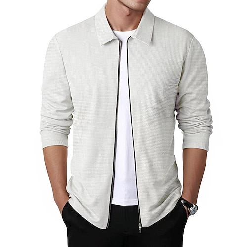 Per uomo Giacca a nido d'ape Giacca di transizione Quotidiano Leggero Tasca Primavera Autunno Semplice Classico Bavero Regolare Nero Bianco Blu reale Cachi Grigio chiaro Giacca