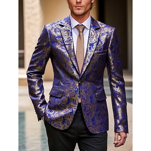 Per uomo Giacca blazer Colletto ad incastro Festa Floreale Stampa Blazer Nero Rosso Blu reale Vestibilità aderente Vestibilità su misura Monopetto Un Bottone