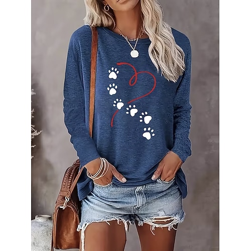 San Valentino Per donna Maglietta Cuore Grafico Moda Elegante Classico Manica Lunga Girocollo Top Regolari Quotidiano Weekend Stampato Blu Nero Blu Reale Grigio Estate Primavera Autunno