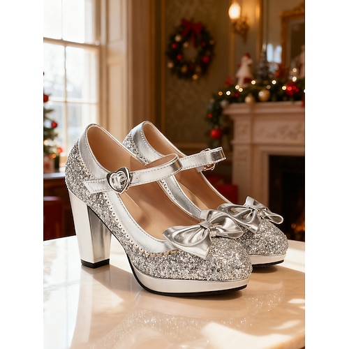 Per donna Liscio Scarpe per danza moderna Prestazioni Al coperto Valzer Tacchi Lustrini Tacco cubano Appuntite Argento Champagne Rosso