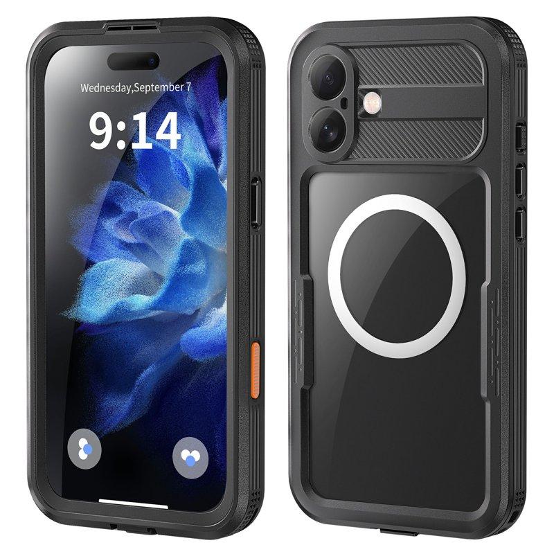 SHELLBOX Mobilskal till iPhone 16 Plus MagSafe Vattentålig Klar Svart