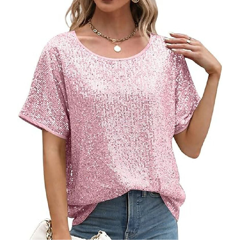 Women's Sequin Sparkly Party Glitter Sparkly Fashion Modern Short Sleeve Crew Neck Regular Tops Daily Weekend Sequins Silver Black Pink Wine Green Summer