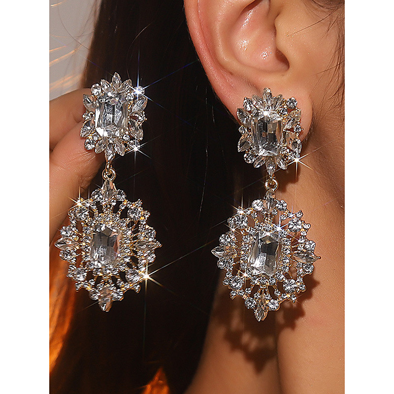 Women's Large Crystal Drop Earrings - Sparkling Statement Jewelry for Party Outfits, Weddings Evening Glamour
