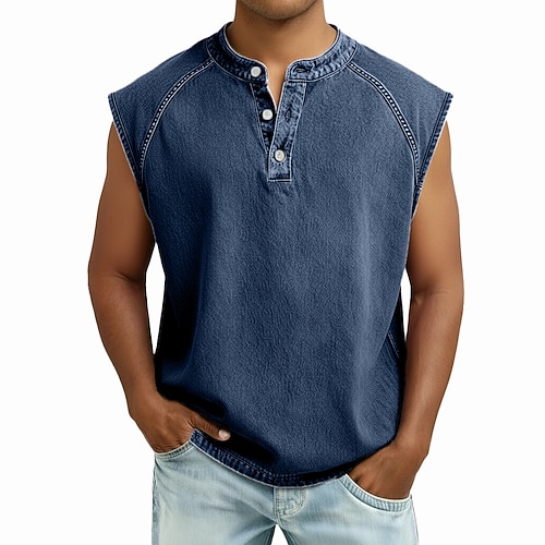 Herren Tank Top Henley Hemd Weste Ärmelloses Shirt Ärmellos Henley Sommer Einfach Mode Designer Muskel Vintage-Stil Knöpfe Lässig Täglich Streetwear Schwarz Hellgrün Rosa Top T-Shirt für Herren