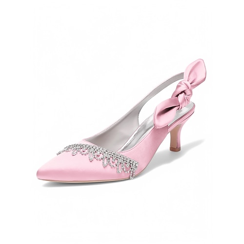 Scarpe con tacco a spillo in raso rosa da donna, tacchi a spillo con punta affilata e decorazioni in strass per le feste di Natale celebrazioni delle feste