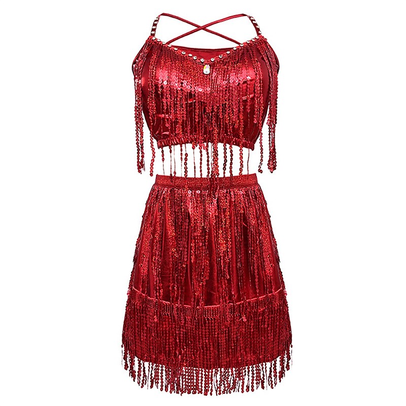 Carnival 2026Rio Carnival Samba Dancewear Carnival Dance Skirts Tassel Sequins Women's Performance Party Theme Party Sleeveless Polyester Brazil Festival Performance Costume