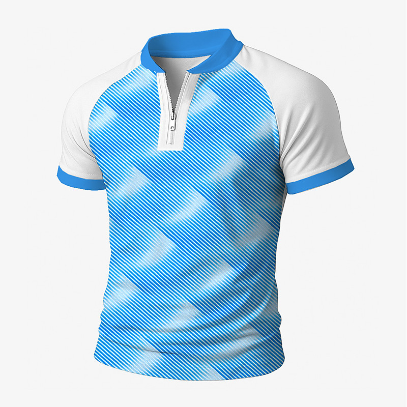 Men's Geometic Line Zip Polo Short Sleeve Stand Collar Business Modern Leisure Business Athleisure Casual Daily Zipper 3D Print Summer Robin's Egg Blue Green Red