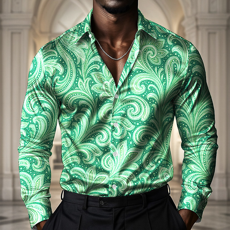 Men's Paisley Ethnic Flowers Shirt Satin Shirt Dress Shirt Long Sleeve Vintage Retro Vacation Dailywear Summer Spring Fall Turndown 3D Print Button Up Shirts Yellow Blue Green