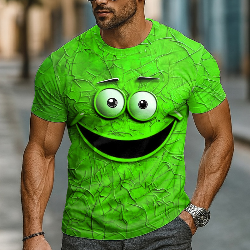 Men's 3D Funny Emotes T Shirt Short Sleeve T shirt 3D Print Crew Neck Shirt Exaggerated Designer Funny Party Street Casual Blue Purple Green Summer Spring All Seasons Clothing Apparel S M L XL XXL