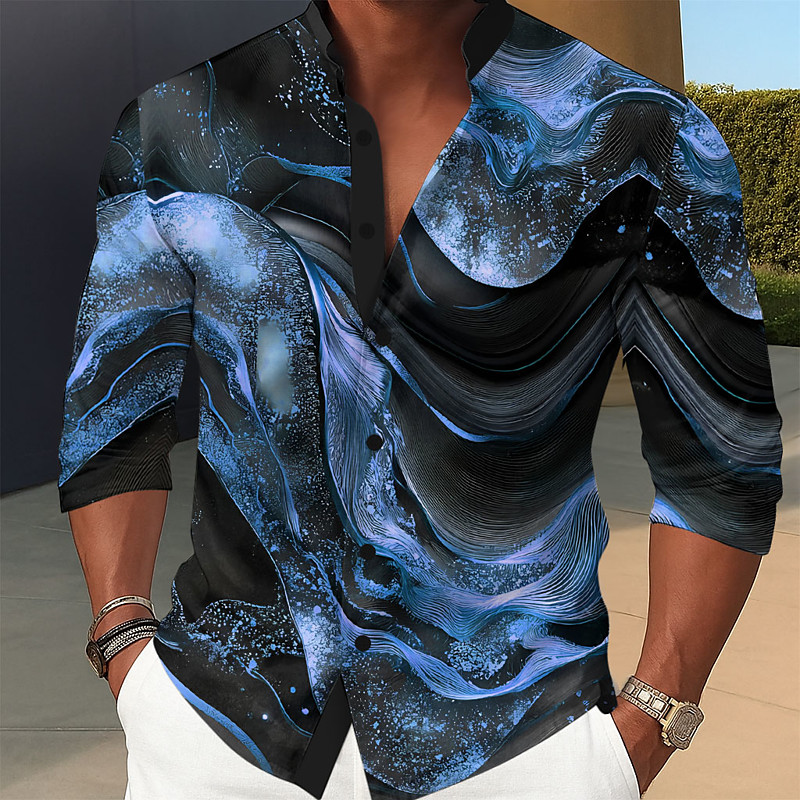 Men's Geometric Pattern Marble Abstract Liquid Art Shirt Stand Collar Shirt Long Sleeve Fashion Casual Dailywear Holiday Spring Fall Mandarin Collar Band Collar 3D Print Button Up Shirts Blue Purple