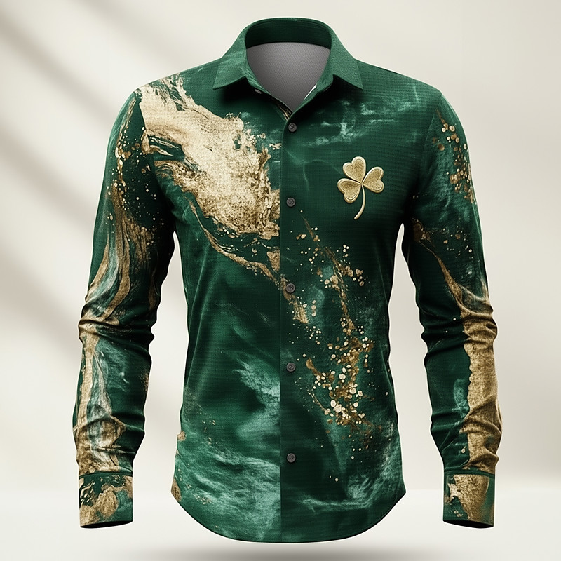 St. Patrick's Day Men's Shamrock Abstract Liquid Art Shirt Waffle Shirt Casual Shirt Long Sleeve Vintage Retro Holiday Summer Spring Turndown 3D Print Textured Button Up Shirts Blue Purple Green