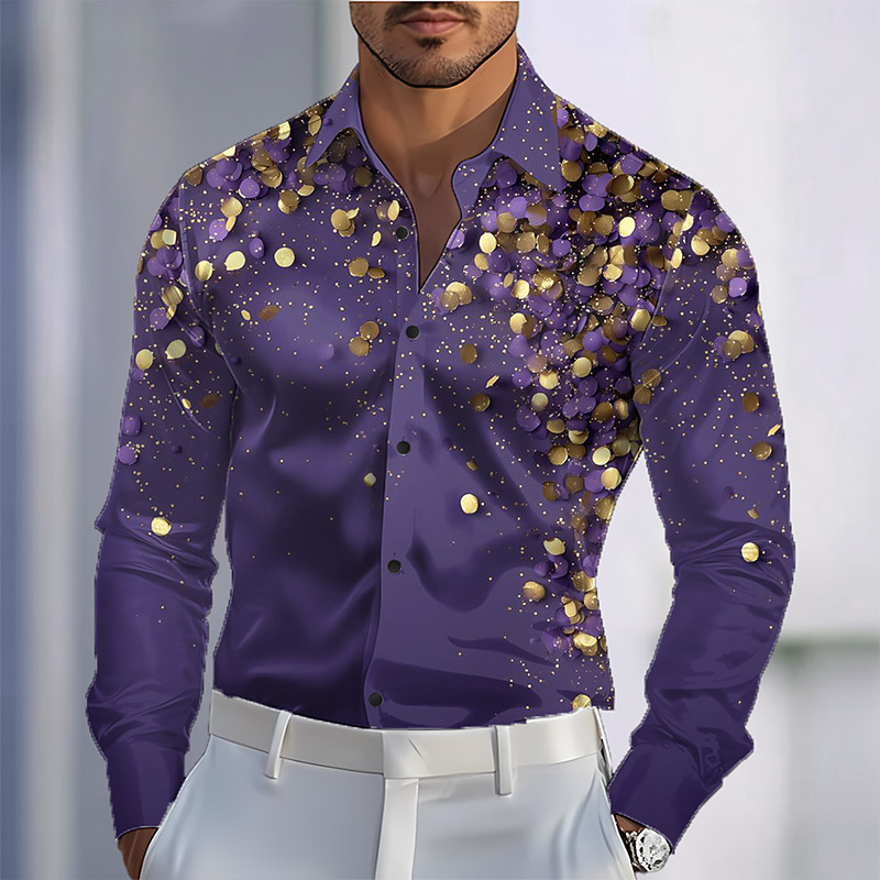 Mardi Gras Men's Abstract Art Carnival Shirt Satin Shirt Dress Shirt Long Sleeve Fashion Casual Party Holiday Summer Spring Turndown 3D Print Button Up Shirts Purple Dark Purple