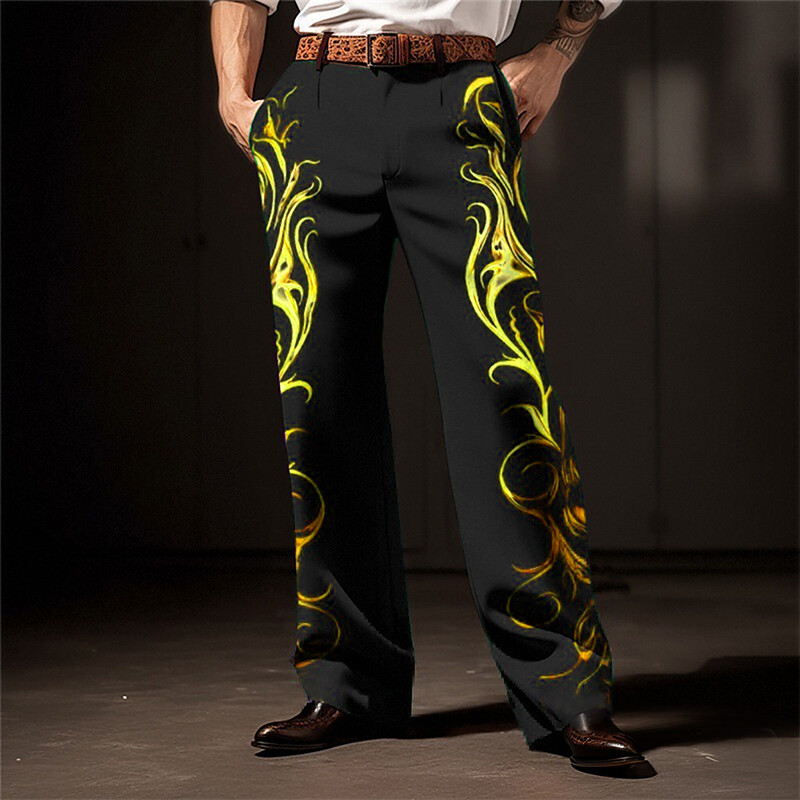 Flame Business Casual Men's 3D Print Dress Pants Pants Trousers Outdoor Street Wear to work Polyester Yellow Red Blue S M L High Elasticity Pants