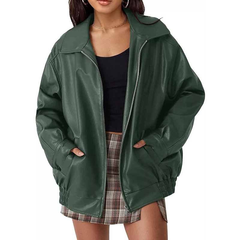Women's Casual Jacket Biker Jacket Warm Comfortable Zipper Pocket Fashion Outdoor Plain Going out Weekend Zipper Regular Lapel Regular Fit Long Sleeve Outerwear Black Pink Dark Green Fall Winter