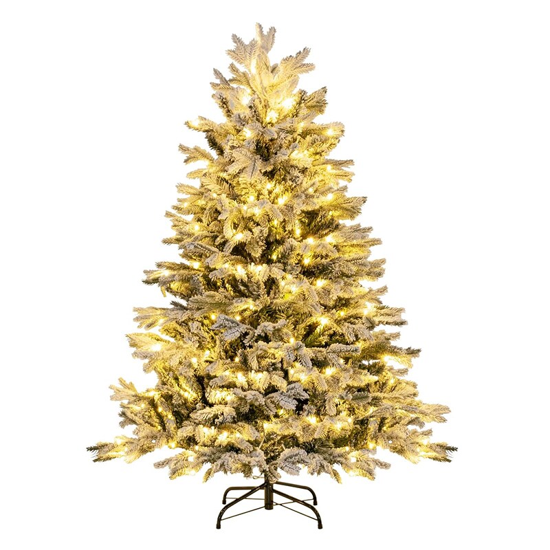 COSTWAY 136 cm künstlicher Weihnachtsbaum mit Schnee und Beleuchtung, Weihnachtsbaum mit 200 warmweißen LED-Lichtern