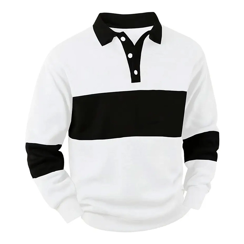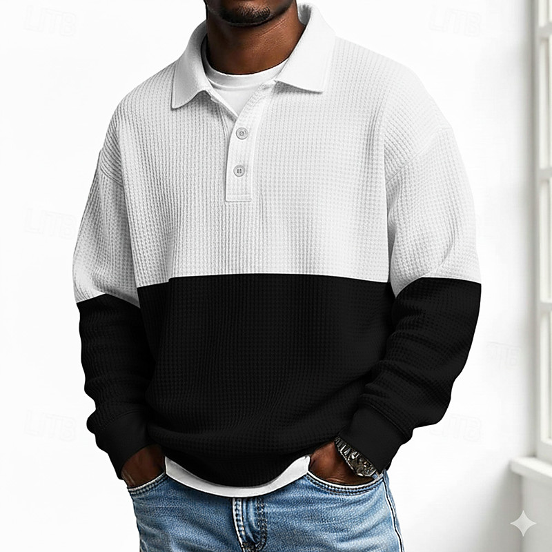 Men's Color Block Polo Long Sleeve Polo Shirts Lapel Casual School Athleisure Daily Wear 3D Print Spring Fall Blue Green Black-white