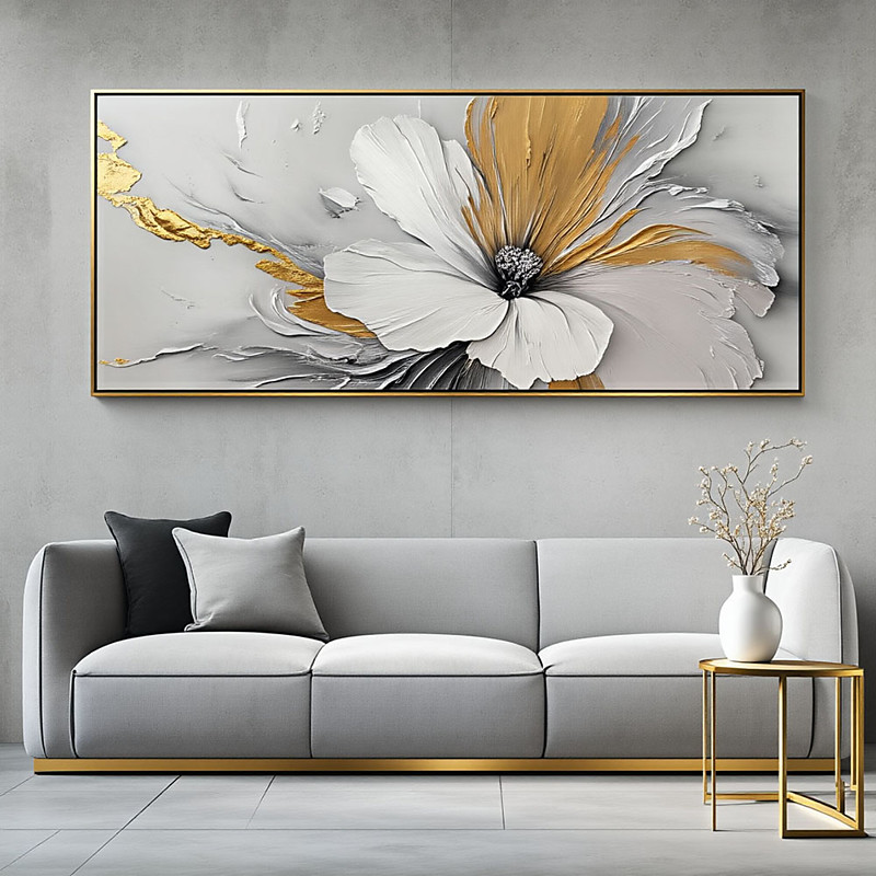 Large oil painting handmade White Flower Abstract Painting Heavy Textured Flower Oil Painting on Canvas 3D Flower Texture Art Floral Wall Decor for Living Room