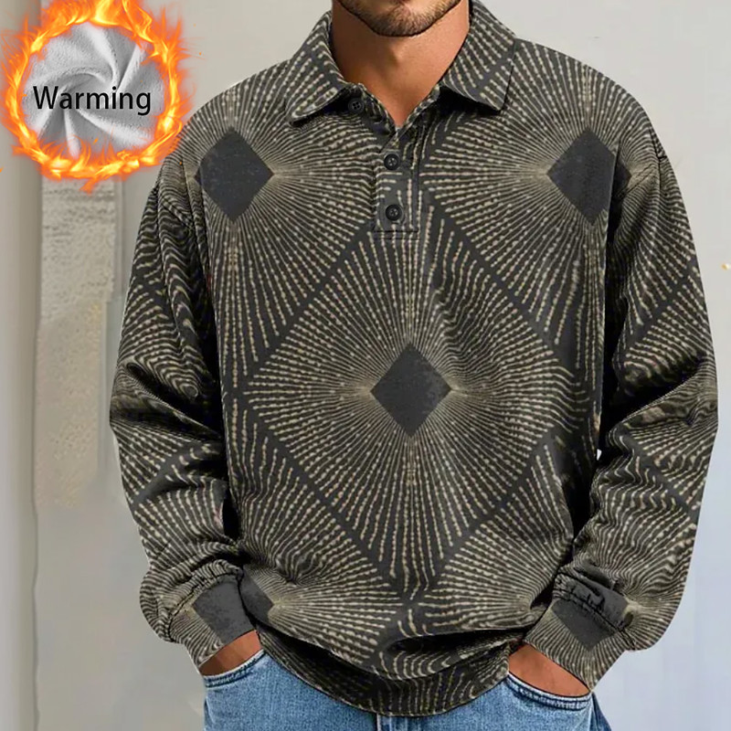 Men's Geometric Abstract Polo Shirts Themmal Shirts Long Sleeve Polo Shirts Lapel Casual Athleisure Holiday Daily Wear 3D Print Fall Winter Blue White Gray