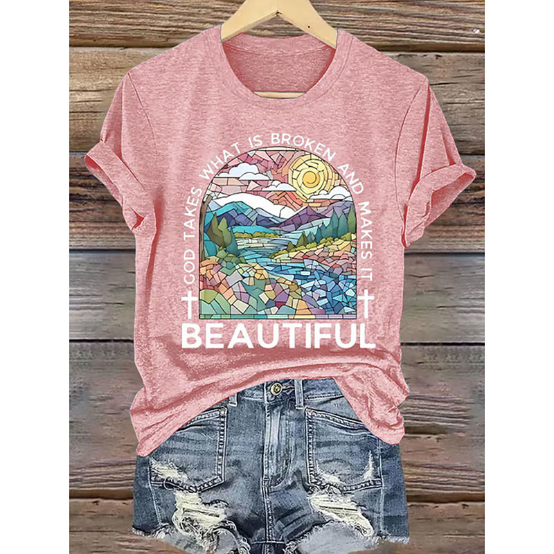 Women's T Shirt Floral Graphic Letter Vintage Fashion Stylish Short Sleeve Crew Neck Regular Tops Daily Weekend Print Blue Black White Pink Green Fall Winter