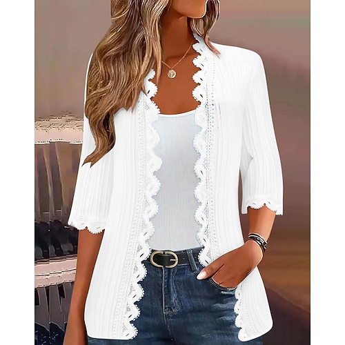 Per donna Felpa Cardigan Streetwear Casual Tinta unica Scollo a V Lavorato a maglia Manica 3/4 Top Regolari Maglia Ferie Uscire Weekend Rosso bordeaux Nero Primavera Autunno