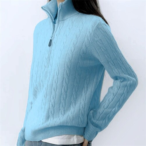 Per donna Felpa Maglione Elegante Moda Carino Tinta unica Dolcevita Cerniera Lavorato a maglia Manica Lunga Top Regolari Maglia All'aperto Casa Lavoro Blu Nero Autunno Inverno
