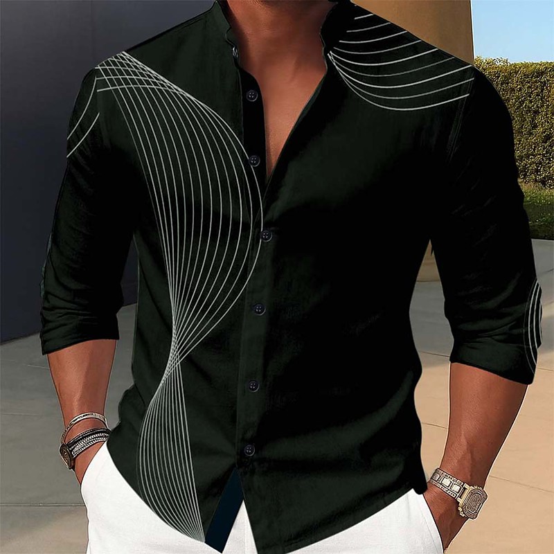 Men's Geometric Waves Shirt Stand Collar Shirt Long Sleeve Fashion Casual Dailywear Holiday Spring Fall Mandarin Collar Band Collar 3D Print Button Up Shirts Black Dark Red Dark Green Dark Blue