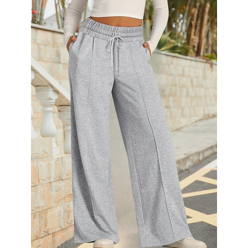 Women's Sweatpants Vacation Vintage Ethnic Style Full Length High Waist Solid Color Plain Drawstring Stretchy Outdoor Vacation Home Light Gray Dark-Gray Dark Brown Dark red Summer Spring Fall Winter