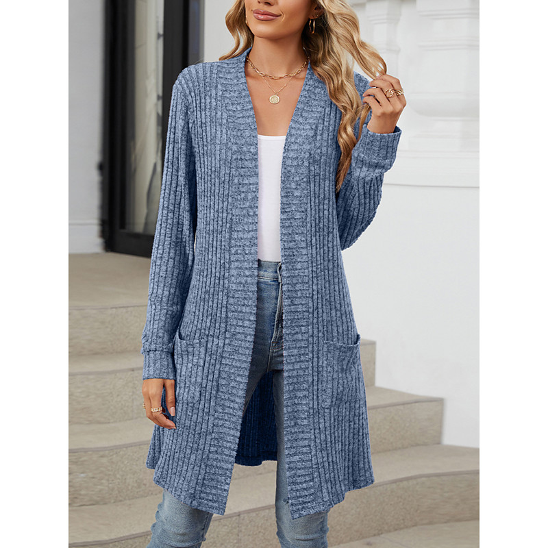 Women's Cardigan Open Front Knit Pocket Spring Fall Regular Daily Daily Long Sleeve Solid Color